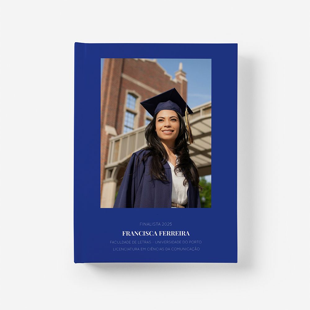 Um registo sóbrio e marcante dos últimos passos na universidade. Perfeito para guardar as fotografias as expressões de alívio, os abraços e tudo o que aconteceu num dos dias mais importantes do teu percurso académico.